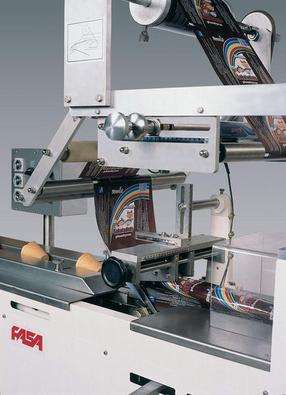 производство | Упаковочная машина FASA РМ-01 Горизонтальная линейная упаковочная машина РМ-01 предназначена для образования рукава из полимерной пленки, размещения в него штучных продуктов - мороженое в вафельных стаканчиках, глазированные творожные сырки, брикеты творога, вафли, батончики шоколада, пряники, конфеты и др. - с последующим запечатыванием. Может быть укомплектована устройством подачи инертного газа (или смеси газов). Необходимая информация производителя наносится на упаковку лентой горячего тиснения.